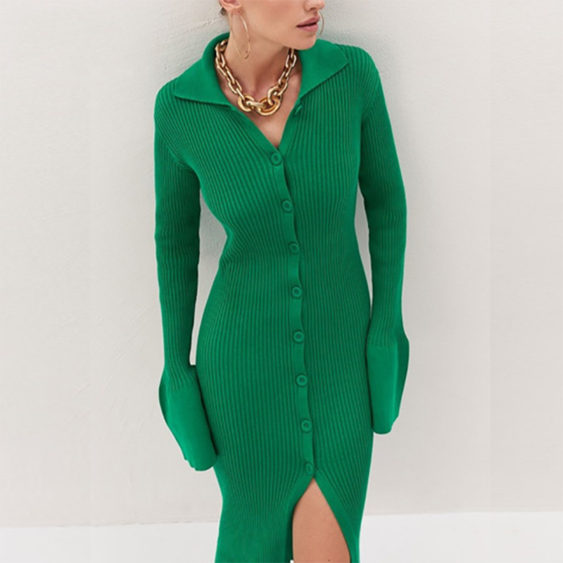 Y2k Bodycon Dress Sweater Sexy Knitted Green 2021 Women Midi Split V Neck Long Sleeve Casual Club Autumn Winter Party Dresses