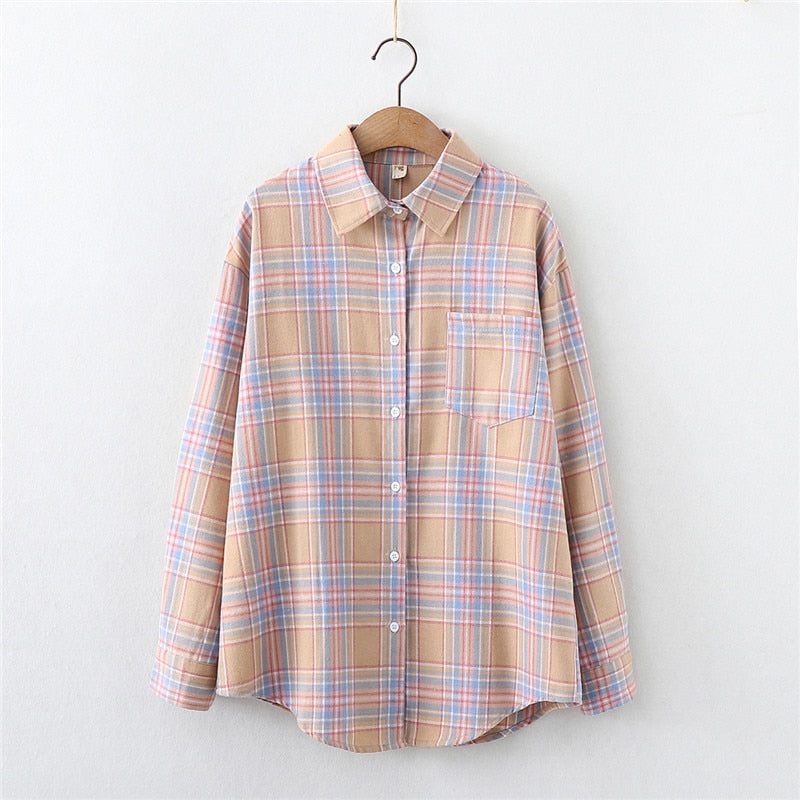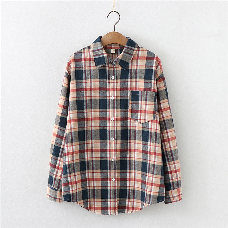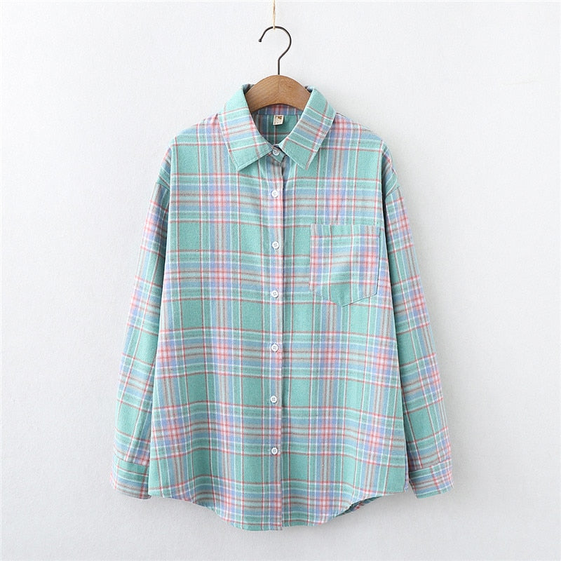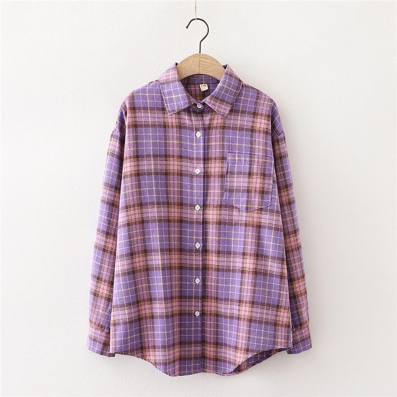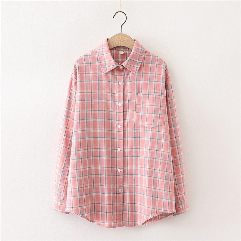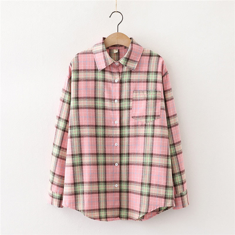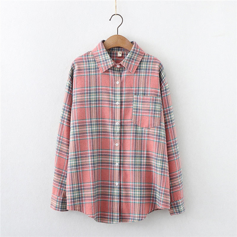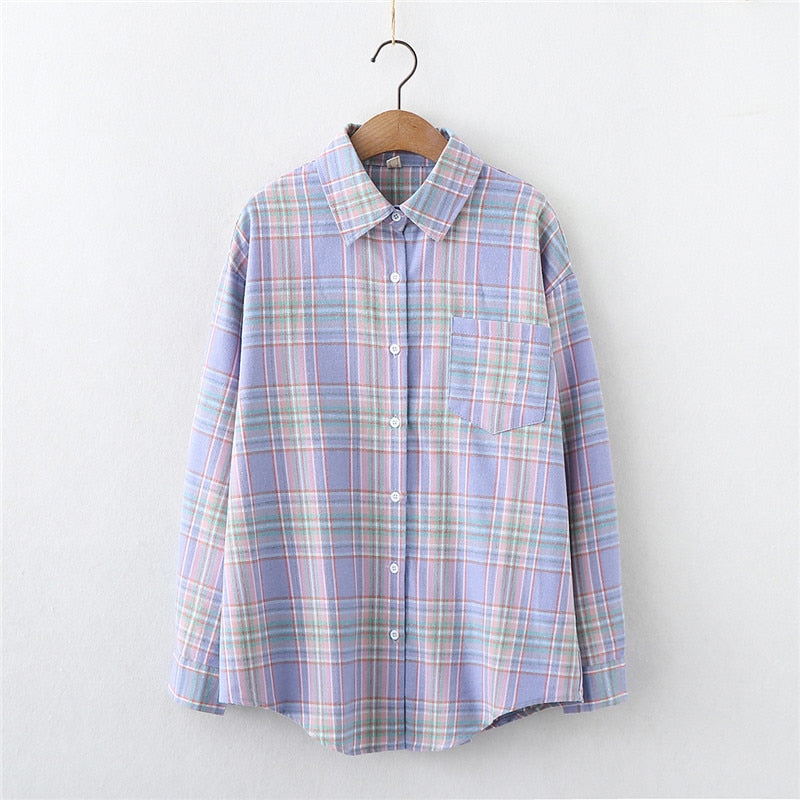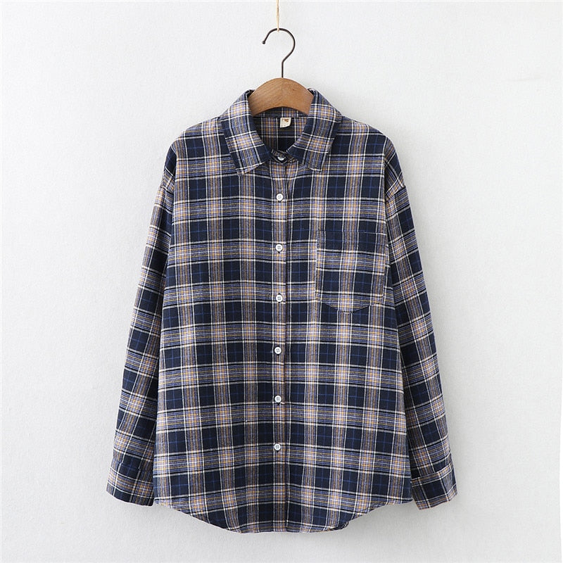 Young Style Plaid Shirts Women 2021 New Loose Design Blouse Lady Long Sleeve Blouses Cotton Casual Shirt Women Tops Blusas