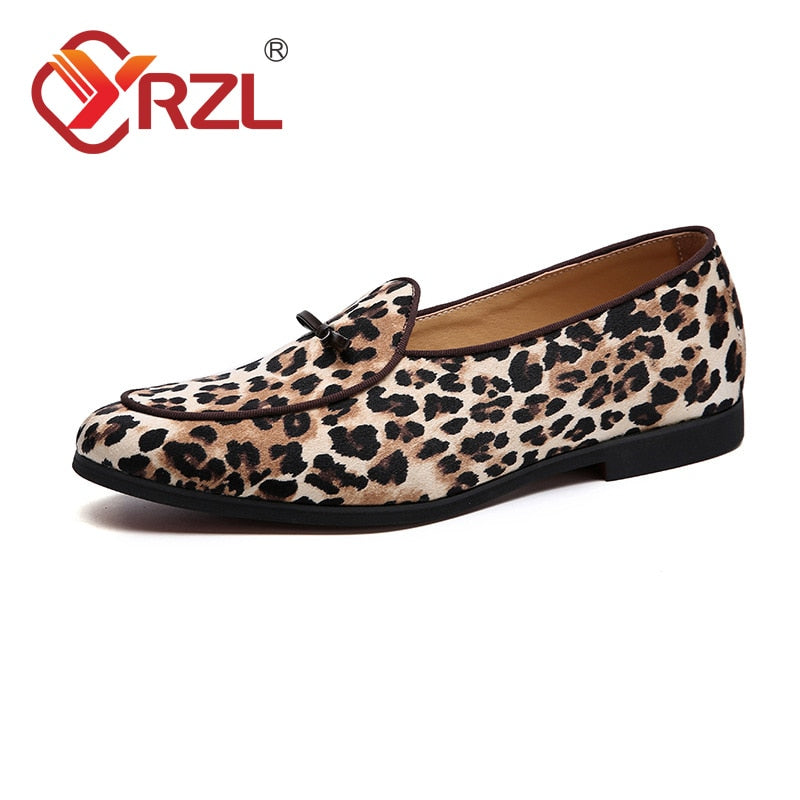 YRZL Leather Shoes Mens Soft Bottom Moccasins Casual Flats Slipper slip on Party Patent Leopard Pattern Mens Shoes Leather