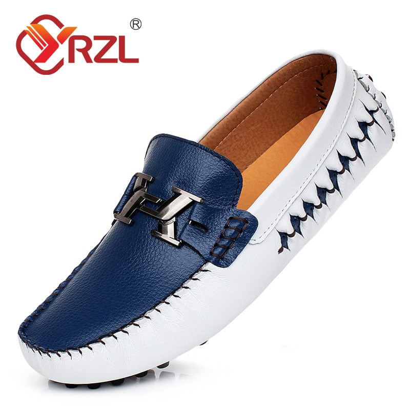 YRZL Loafers Men Handmade Leather Shoes Casual Driving Shoes Flats Slip-on Shoes Moccasins Boat Shoes Mens Loafers Men